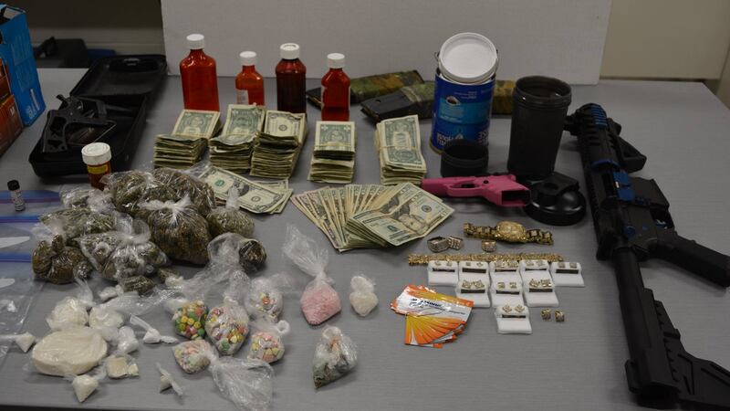 Police say cocaine, methamphetamine, marijuana, weapons, stolen property and $1,762 in cash were seized from the residence.